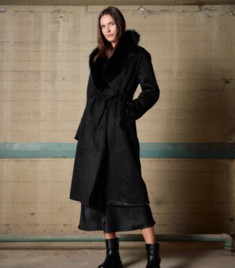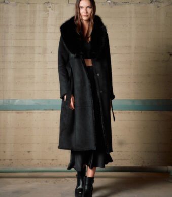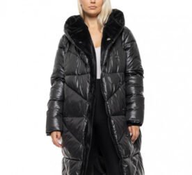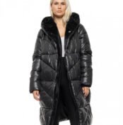Biston Γυναικείο μακρύ παλτό καστόρ και συνθετική γούνα